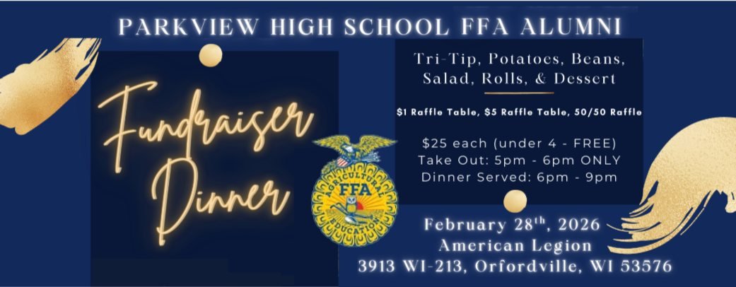 Join us for a fundraiser dinner, silent auction, and raffles to support the Parkview FFA Alumni!